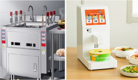 總部自主研發(fā)并生產(chǎn)智能升降煮爐、做飯機器人等智能烹飪設(shè)備,一臺設(shè)備頂多個人工,1-2人即可開店,大幅降低人工成本。搭配總部配送的、符合食品安全高標準的預(yù)制半成品食材,無需大廚,即可實現(xiàn)完全自動烹飪,快速出餐超簡單。